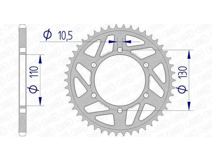 Afam aluminum crown gears are made of an alloy that is both light and tough. The Quality of Machining and the Precision of the Cutting Make AFM A Worldwide Standard Settes for Motorcycle Transmission Parts. Racing Aluminum Crown Gear Ultra-Light with Hard Anodizationreinforced Resistance to free and wearrange-topping Finish and Qualityessential for Competitive Riding Chain_pitch: 520.0 Material: Aluminum Rear_Poket_Teet_count: 41.0.0 REAR_PROET_SSION: Ultra-Light Hard Anodized