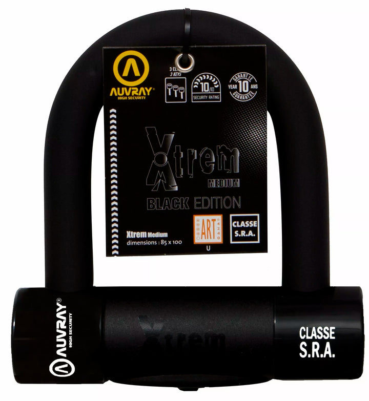 Security U-Lock, Ø 18 mm Passivated Hardered Steel Shackle, Shackle Protection Cover in Black Matte Finish, Hardened Steel Lock Body, Hardened Steel Double Bolt Locking Mechanism, 7 Discs High Security Lock Cylinder, Sawing and Attack, Sawing, Pick, Pick, Pick, Pick, Pick. Of Cutting, ABS END CAPS AND KEY DIRT COVER, 3 FLAT MILLED KEYS, Key Cutting Service, Using Exclusive Copy Code