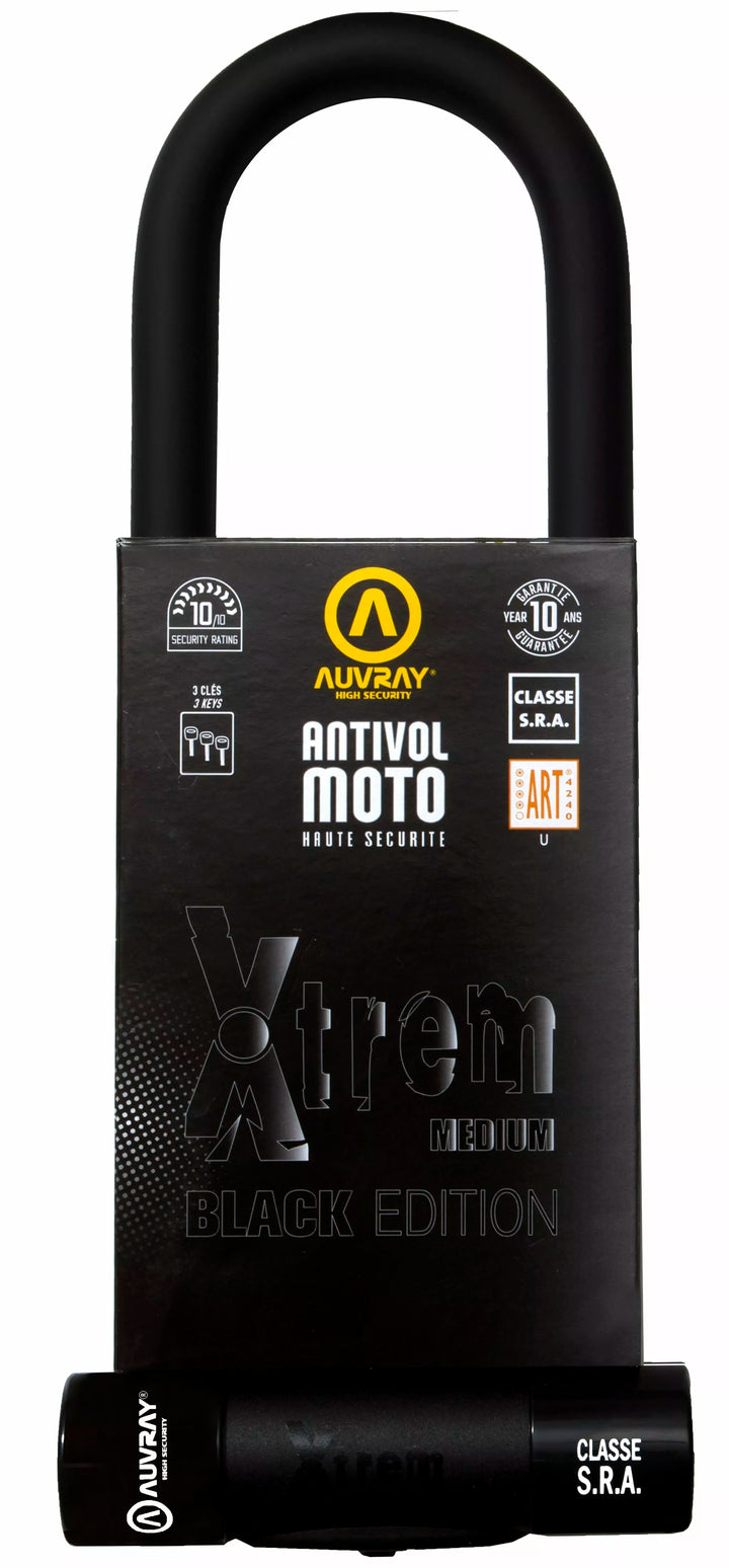 Security U-Lock, Ø 18 mm Passivated Hardered Steel Shackle, Shackle Protection Cover in Black Matte Finish, Hardened Steel Lock Body, Hardened Steel Double Bolt Locking Mechanism, 7 Discs High Security Lock Cylinder, Sawing and Attack, Sawing, Pick, Pick, Pick, Pick, Pick. Of Cutting, ABS END CAPS AND KEY DIRT COVER, 3 FLAT MILLED KEYS, Key Cutting Service, Using Exclusive Copy Code