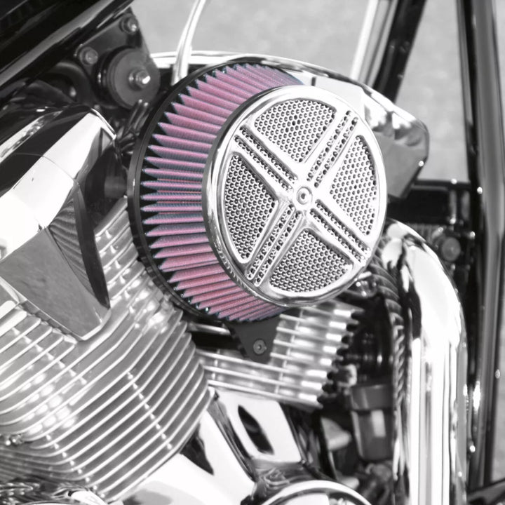 X-CEERATION IS MUCH QUICKER, SMOOTHER AND STRONGS, DYNO DESIGNED "AIRLOAD" MANIFOLDS REDUCE TURBULENCE AND INCREASE VELOCITY, BOOSTING HORSEPOWER AND TORQUE, Custom-Made Airraid Cleanable, Reusable Air Filter Provids Increased Cleaner Assembly, Maintaining Balance and Symmetry, Includes Instructions and All Necessary Hardware, 3-D Mesh "X" Cover is Beautifully Stylized, Machined from 6061 T-6 Billet Aluminum, Made in the USA
