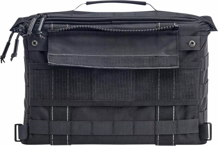 UV-TREATED 1680-denier Ballistic Nylon Exterior Resists Moisture and Fading, Strong, Flexible Eva Foam Panels Inside Main Compartment Add Structure and Durability, Molle System on Exterior Provides Options for Attaching Accessories and Extra Gear and Extra Gear, One Main and Extra Gear, One Main and Extra Gear Rustproof Nylon Zippers, Zippered Clamshell Cover on Main Compartment Locks Closed with Two 1.5-Inch Wide (36mm) Reflective Polyester Straps and Duraflex Quick-release buckles, high-vis orange interior lining make's spotting content Zippered Pocket on Clamshell Top Provides Fast Access to Maps, Smart Phones, and Other Essentials, Two-Piece Mounting Yoke With Adjustable Hook and Loop Panel Fastens to Botth Bags With Extra-Large, Heavy-Duty Nylon Zippers, Universal Fit Work Works Multiple D-Rings and Molle Points on Bag Exterior Provide Options for Carabiners/Bungee Cords, Hidden Cable Port Into Main Compartment-Perfect for Charging Devices, Waterproof Nylon Rain Covers with Elastic Gathers and drawstring Closure Extra CLosure Test