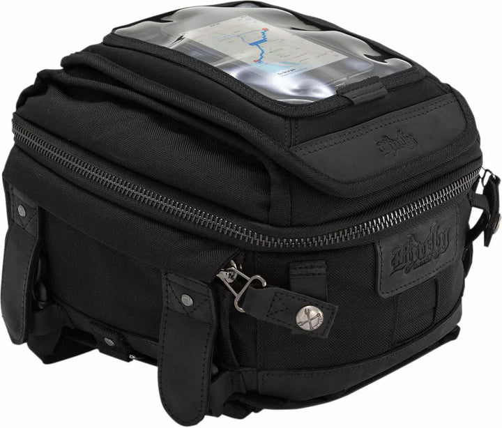 Easy On, Easy Off Magnetic System Reinforced with Safety Securing D-Ring Anchor Points for Mounting, If You're Riding Solo or Simply Want The Bag Out of the Way, it's equally at home on the tail and includes a tail on Includes a Convenient Magnetic Removable Map/Accessory Screen That Sticks Either Directly to the Bag Lid or Directly to the Tank, The Map Screen Is Designed With An Innovative Stretch Screen Design to Hold Any Variety of Smart Phones, Small Tables, And Ev as as well as Motorcycle Charging Accessories So You Can Keep Your Smart Phone, Tablet or Go-Pro Powered Up On A Long Ride, Two Exterior Zipper Pockets With Leather Securing Straps, "Anti-Flail Snap System", "Moto Centric" Speed ​​Buckle