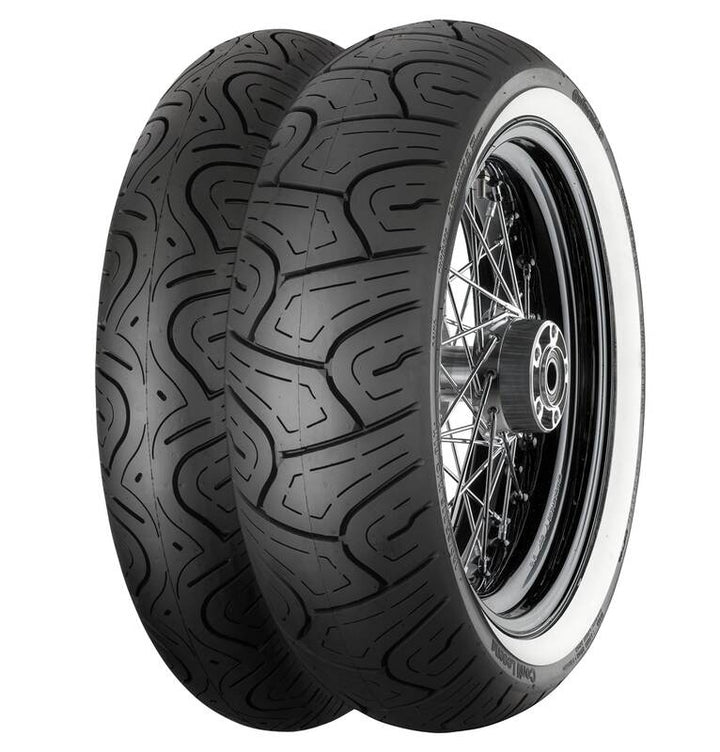 Classic custom whitewall tire for cruisers and heavy touring bikes. Unique pattern design with whitewalls to support the classic look of touring bikes. Specially designed for heavy touring bikes, cruisers, and Harleys® with engineered carcass construction for easy handling, solid behavior, and a high level of comfort. The MileagePlus Technology features a compound that significantly extends mileage while maintaining exceptional handling. Multi-grooved pattern for optimal drainage. Consistent performance during tire lifetime. Aspect_ratio: 90.0 Markings: Whitewall Position: Rear Rim_diameter: 16 Speed_index: H < 210 km/h Tire_category: Custom bikes Tire_family: Motorcycle & Scooter Tires Tire_load_index: 71.0 Tire_pattern: CONTILEGEND Tire_Structure: X-Ply Tire_width: 140 Tubeless_or_Tubetype: TL - Tubeless
