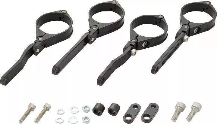Adjustable Dual-Axis Headlight Bracket Made of CNC Machined Aluminum in Black, The Fork Clamp Can Be Adjusted Vertically, Allowing the Headlight Position to Be Adjusted In The Front-Back Dire M8 Indicator Mount Kit Is Included for Discreet Installation