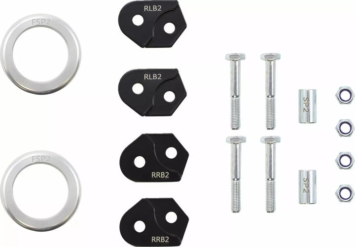 LIFTS ALL FOUR CORNERS OF THE VEHICLE FOR INCREASED BROUND CLEARANCE AND STRACHITY, DEGENINGS FOR MOUNTING LARGER TIRES, INCLUDES ALL NECESSARY HARDWARE AND INSTRUCTIONS