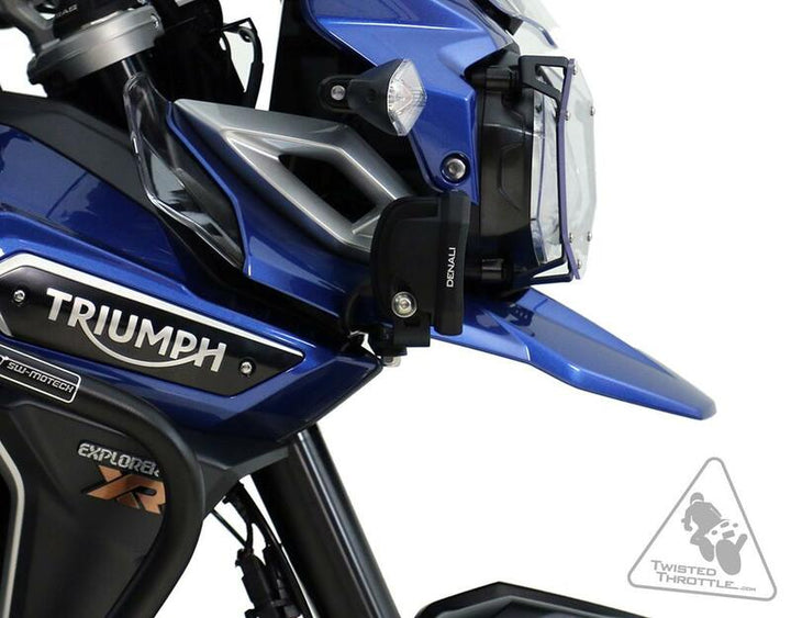 Whether you take the dirt road home or plan a long adventure - give your Tiger Explorer the right field of vision with Denali's reliable light bracket.