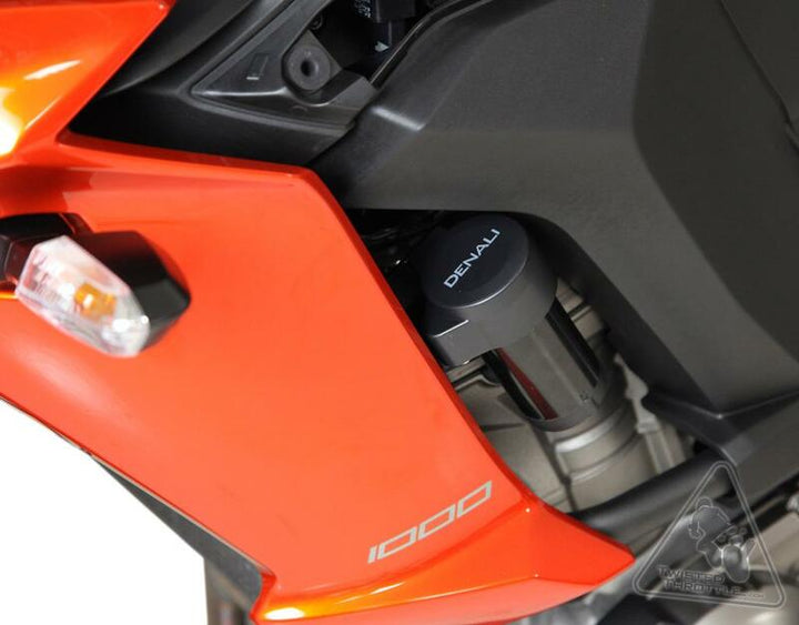 Do you want to upgrade the sound of your Kawasaki Versys 1000LT? With Denali Soundbomb Horn mount HMT.08.10100 can you easily assemble Denali Soundbomb Split Dual-Tone Air Horn on your motorcycle. This model -specific bracket is designed to optimally place the signal horn, which improves both the efficiency of the sound and your safety on the road.