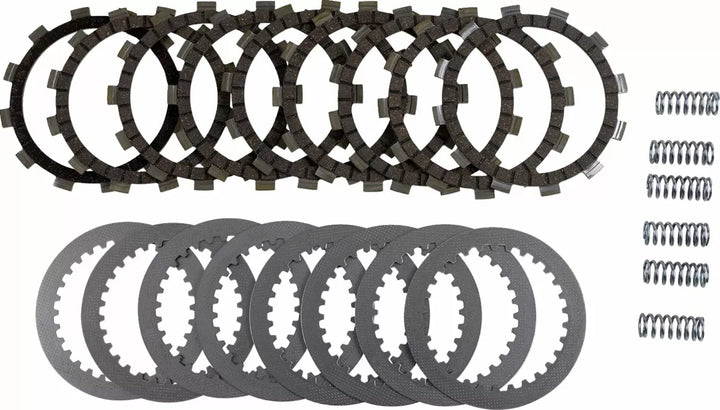 Anti-Swell, Alloy-Impregnated Heavy-Duty Cork-based Facings for Smooth Clutch Take-up, Allows Modulation, Unlike Paper Clutches That Tend to Snatch, Complete Engine Set of Friction Plates, HD Spring and Steel Movael Separates Pandes Pandes PREVES PREVES Height, Built with Swagged Aluminum Carriers That Spread The Load On The Clutch Basket and Prevent Clutch Basket "Dogging", 10-15% Uprated Heavy Duty Clutch Springs