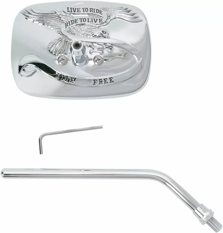 Universal Steel Mirror With "Ride Free" Message and Image On Mirror, Mirror is Fully Adjustable, 10 mm Mounting