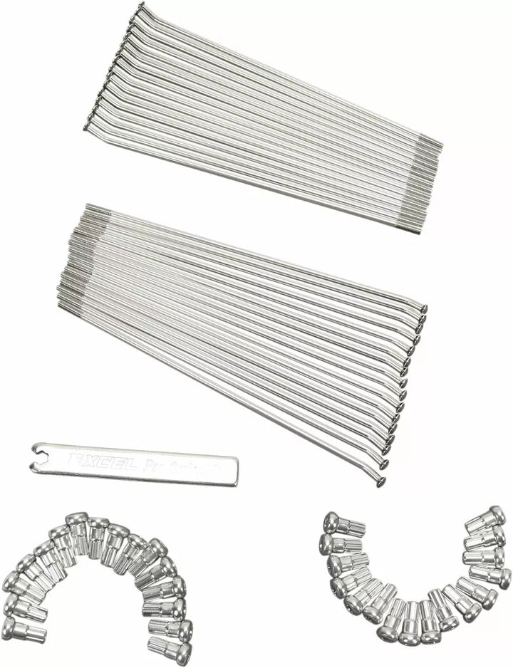 Set includes highly polished 302 stainless spokes with an average tensile strength 10% higher than oem spokes