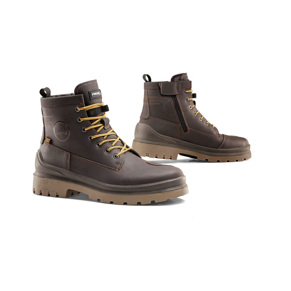 Falco Mc-Stövlar Rooster Brun i robust läderdesign med snörning och dragkedja. Skyddande motorcykelstövlar för säker och stilren körning.
