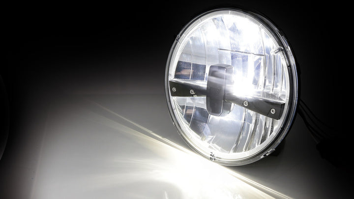 - Round 7 inch headlight with CNC mounting ring and mounting kit