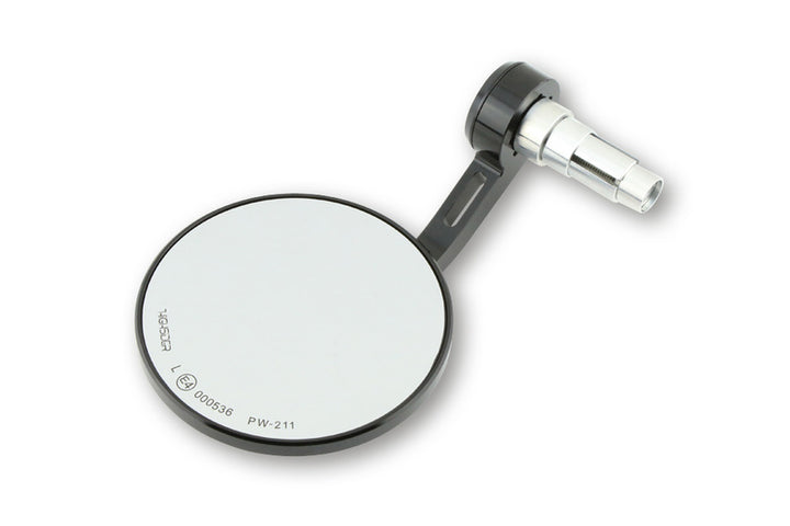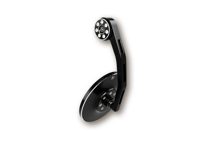This Highsider handle mirror is CNC-processed and has a rounded head in black anodized aluminum. Together with the polished faces, this model stands for a Nobel and stylish design. The mirror fits the handlebars with an interior dimensions of 12 to 22 mm, which means that it fits on most 7/8 inches and 1 inch aluminum or steel pipe board. The mirror is equipped with a lightly tinted, curved glass for the best possible visibility.