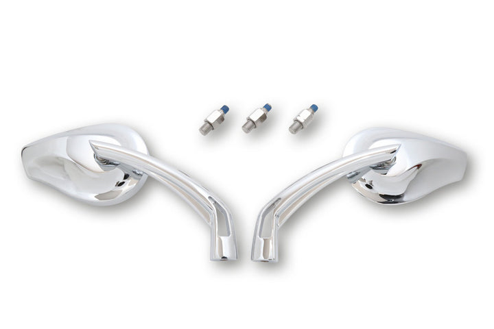 Highsider Pheonix 2 Mirror, Alu Chromed or Black Selectable, with 2 Mirror Adapter M10 x 1.25 mm and 1 x extra l/h-thread adapter f. Yamaha, e-ground, pair.