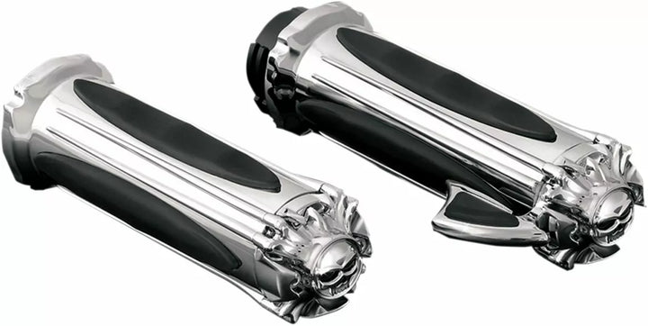 Wicked Looks, Wicked Comfort, Grip Bodies Are Smooth Chrome with Vibration-absorbing Rubber Inserts, Zombie End Caps Enhance The Look, Premium Zombie Grips Include Throttle Boss