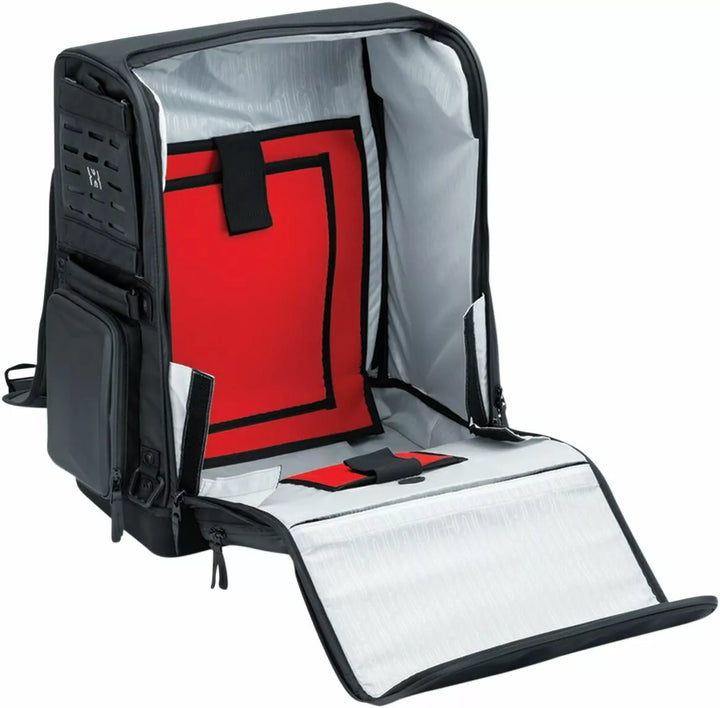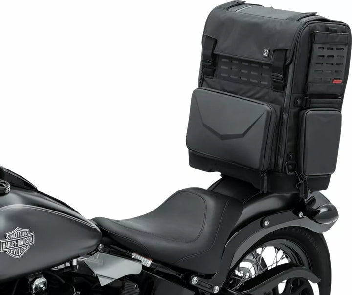 Wide Front Hatch for Easy Access To The Main Storage, Formed Bottom for Secure Mounting on a Variety of Luggage Rack Styles or Passenger Seats, High-Strength Hook-&-Loop Sissy Bar Strap for Easy Mounting to Passenger Backrests or Sissy Bars Cell Phone or Media Device Pocket with a Built-in Port to Accommodate Charging Cords, Built-in External Coat Flap With Adjustable G-Hooks for Coats, Blankets or Other Items, External Bottle Pockets and QuickAccess Stash Pocket Smalls Pocket Smalls Items to Keep Smalls IKEPLETS TO KEEP SMALLES TO KEEP SMALL IRCES Molle for Modular Attachment Options, Integrated Heavy-Duty Welded D-Ring and Included Mounting Strap Kit, Thermoformed Construction and Components for Strength, Security and Shape Retention, Reflective Accents for Enhances 168 Included Rain Cover, Glove-Friendly, Weather resistant Zippers, Premium Lined Interior with Multiple Pockets and Compartments, Heavy-Duty Ergonomic Carrying Handles
