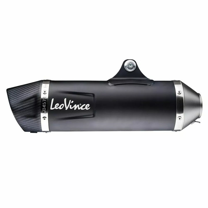 Nero Join the Dark Side, Aggressive Style and Sharp Lines., Leovince Nero is the New Muffler for Motorbikes and Maxi-Socooters with a Dark and Modern Look, The Result of Leovince's Constant Research of Quality Steels and Exclusive Processes. CAP, Metallic Ceramic-Based Black Paint, Matte Finishing, Laser Etched Leovince Logo