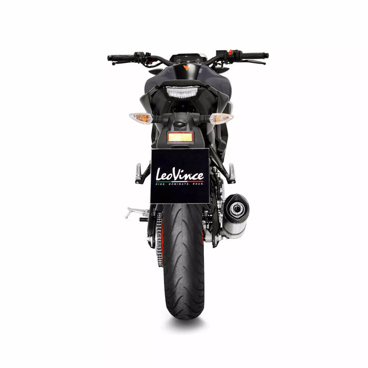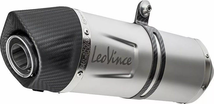 LV One Evo, The Lv One Evo Stainless Steel is the synthesis between tradition and modernity., It Combines The Leovince Classic Style Looks and Innovation in the Research of the Most Performing and Lightweight Materials., Features, Aisi 304 Stainsee, Full Sleevet, (1,650 ᄚ F), Adjustable Full Carbon Fastening Strap, Laser Etched Leovince Logo
