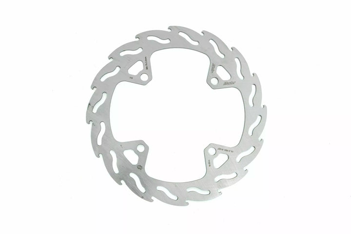 Flame Shaped Valenting Slots And Outer Perimeter Ensure An Equal Amount of Contact Surface Between The Brake Pad and Disc Throughout The Who Rotation of the Disc., Smooth and More Predictable BRAKING ACTION WHICH ALLOWS YOU TO BRAKE HARDER. Double-grinded for Perfect Fitment and Flatness, for Best Performance We Recommend Using Moto-Master Brake Pads with the Matching Pad Compound That Best Suits Your Type of Riding.