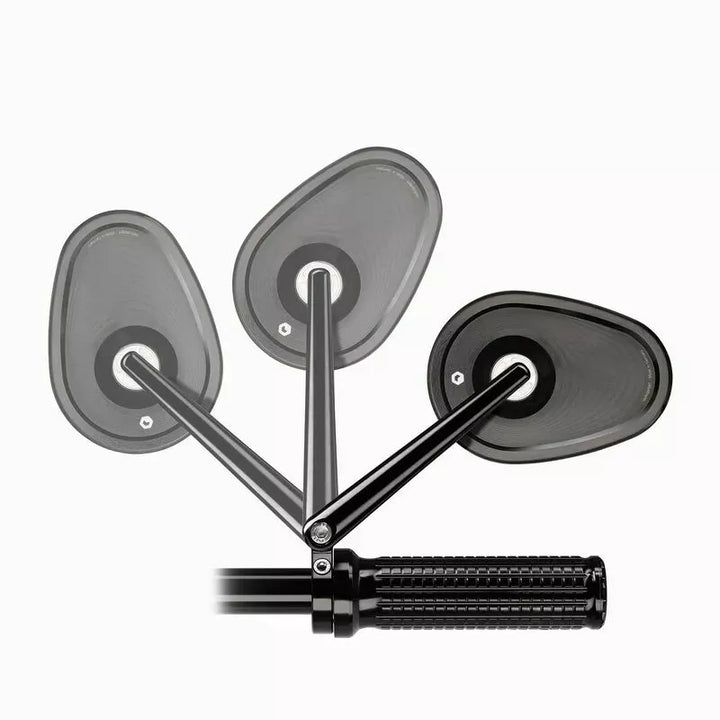 The Compact Solution with 110mm Arm Length, For Scrambler or Super Moto., Quick Installation with a Wide Range of Mounting Options Without Modifications to the Handlebars. , Extremely Practical for Narrow Passages, Space Problems in the Garage or for Transportation. The Locking Mechanism is Very Stable and Cannot Be Adjusted Accidentally. The Mirror does Not Vibrate Even at High Speeds When Mounted Correctly., The Mirror Can Be Mounted Above or Below the Handlebars., Our Glasless Mirror Series Mo.view is Unique in the World. The Special Feature of Our Mirrors is the Patented Mirror Surface, Which Is Worked Directly From the Metal of the Body. The Aluminum Itself is the Mirror Surface., The Mirror Body Itself Beces Very Thin and Light, Creating a Weightless Design With No Rim or Frame. The Convex Mirror Surface is Manufactured by Fly Cutting Using Diamond Tools On Ultra-precision Machines in Berlin. It is then made resistant to oxidation, corrosion and abrasion by a complex plasma coating in a vacuum., The mirror body and mirror arm are milled from solid aluminum on cnc machines and anodized to a high quality. All Screws are Made of Stainless Steel. The precise ball joints the mirror to be adjusted Comfortable and very stable. Glass Breakage or Glass Falling Out is Simply Not Possible., A Special Feature of the MirRors in the Flip Series is the pivoting mirror arm with defined locking angles at 45 ° intervals. This Allows the Mirror to Be Tilted Upwards as Required Without Changing the Mirror Setting.