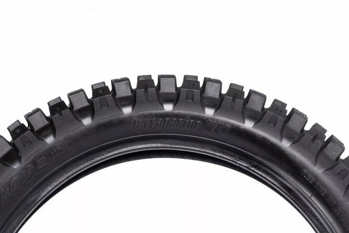 The Latest Addition to the Motoz MX Tyre Range is the Terrapactor MXI (MX Intermediate) Competition Tyre. Engineered with a Lightweight Carcass and Designed to Excel in Intermediate to Hard Terrain (Mix of Loose and Packed Soil, Hard Packed Soil and Deep Heavy Ruts). The Benchmark for MX Tyre Performance Across Multiple Types of Terrain!, The MXI Tyre Stands Out With Its Distinctive Pattern, specifically Crafted to Deliver Top Performance. By strategically Incorporating Flex Points Within The Carcass and Knobs, The Mxi Tyre Provides Predictability and Enhanced Corner Grip, Adapting and Flexing According to the Terrain to Give Greater Control and Confidence While Riding. Hard Packed Soil and Deep Heavy Ruts), Full Range from Mini-Cross to Big Bikes (15 Different Sizes), Two Front Tyre Sizes, 80/100-21 For the Most Aggressive On Track Performance and the All-New 90/100-21 With a Taller Profile for Increased Conditions, Unique Flex Zones Built Into Carcass and Knobs For Improved Feel and Compliance, Flex Zones Incorporated Into All Treat Rows to Improve Corning Feel and Drive, All New Inner Sidewall Construction for Improved Compliance
