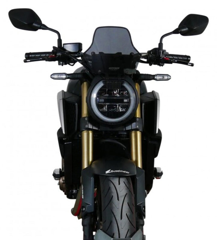 Equipping this popular everyday motorbike with a little wind protection is the perfect solution: with two brackets, the MRA sports screen is quickly attached and noticeably increases comfort against the wind pressure with its 22.5 cm. Length (mm):460 Width (mm):363 Height (mm):183 Color:Tinted Crank length (Mm):NULL Crank material:NULL Windshield type:Sport