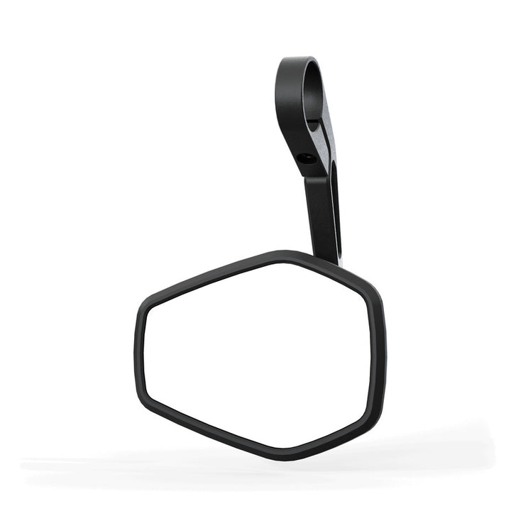 Rising and Flat Trapezoids Create the Futuristic Design of the Highsider Esagano-RS Mirror Series, Which Thus Picks Up The Design Language of Modern Motorcycles. The Base Body of the Mirror Head, Made of High-Quality Plastic, Encloses The Distinctive Inlay, which is CNC Machined from Aluminum. This symbolizes the design Language of the esagano product family and creates a unique recognition value with the Rising and flat tapered geometries. The Bead-Blasted and Matte Black Anodized Surface of the Aluminum Contrasts with the Surface of the Mirror Head, Completing the Image. The Long Handlebar End Stem in Aluminum Embodies Design and Function. In This Way, the Forces Acting on the Mirror During Travel Are Dissipated Particularly Effectively via binomial Structures Using Tension and Compression Points. At the same time, this Structure Reduces the Weight of the Mirror Stem and Also Creates a Visually Harmonious Overall Appearance. The Handlebar End Mirror Can Be Mounted Both Standing and Hanging On The Handlebar. The Mirror is Mounted Using the Optically Matching Handlebar Weight Esagano-Ls With 12mm Stem Mount or a Handlebar Weight In An Alternative Design From Our Product Range. If there is sufficient space, The Mirror Can Also Be Attached Directly to the Handlebars via The Supplied Aluminum Adapter Rings