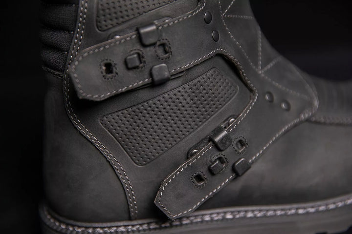 Premium Leather Upper Combined With Oil/Slip-resistant Outsoles For Rugged Style, Five-Strap Chassis Allow for a Comfortable Fit, Side Zippers for Easy On And Off, Tough Reinforced Shin Plates and Impact resistant Nylon Buckles, Internal D3 your ride take a turn for the worse, hi-rebound eva foam insole's provide all-day motorcycle riding comfort and support, reinforced shifter overlay