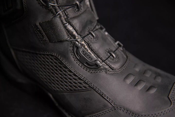 Premium Leather Upper Feature A Water-Resistant Finish, Breathable Event Waterproof Liners Help Keet Dry, Highly Lugged Oil/ Slip-Resistant Rubber Outsoles Provide Peak Motorcycle Performance, Open-Cell Polyurethane Insoles Feet, Ba. Comfortable Fit, Dual D3O® Inserts Provide Ankle Coverage, Reinforced Rubber Toe Caps, Reflective Heel Accents and Shifter Interface NUBS