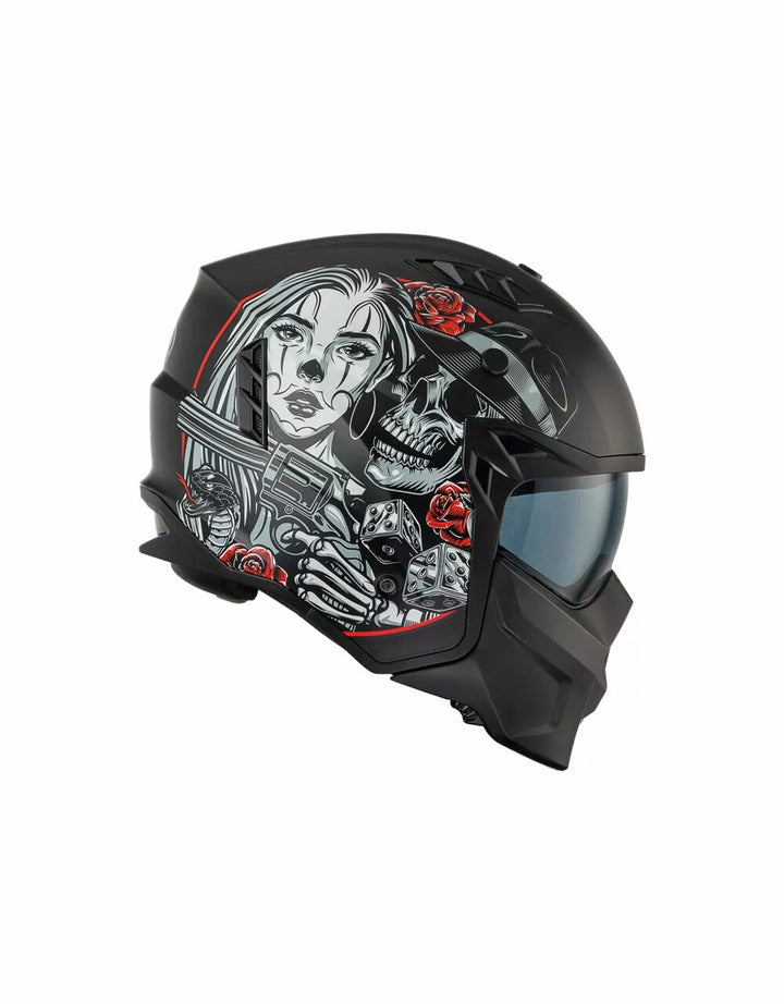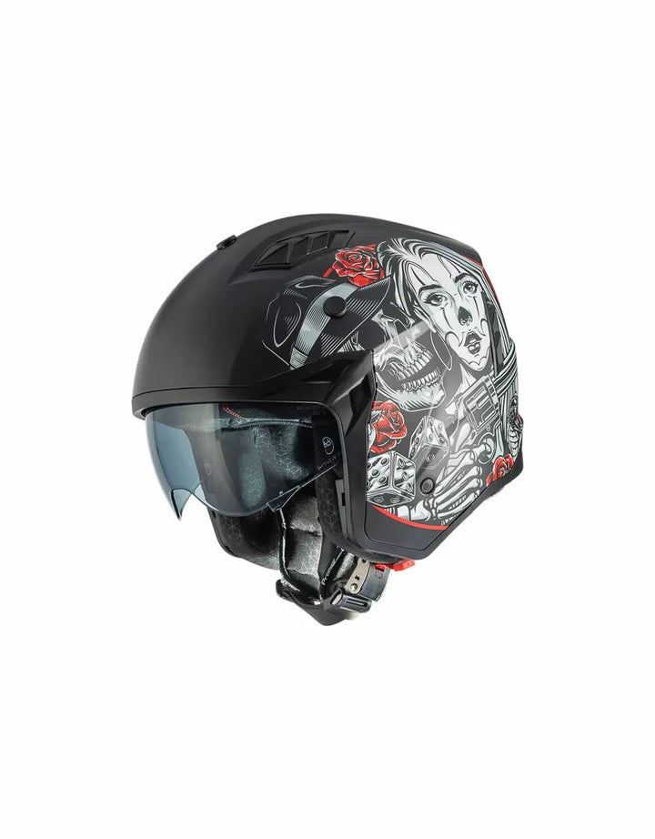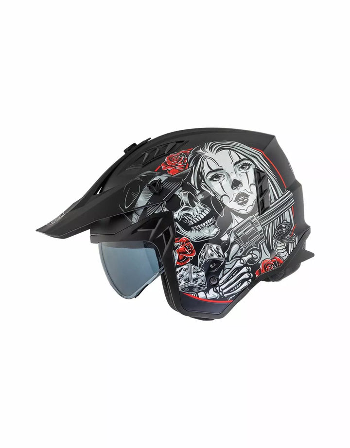 Thermoplastic Outer Construction is Lightweight and Inner Construction is Made of EPS Materials with Varying Density Depending on the Area to Ensure Impact Response., Features Removable Chin Section to Turn This Full-Face Helmet to a Jet Helmet. , Visor is injection Molded Transparent Polycarbonate and Has Anti-Scratch Treatment. , Internal Visor Works Like Sunglasses and Can Be Raised Inside The Shell., Ventilation System Has Two Air Intakes On The Upper Part of the Shell and Two Extractors on the Back., Positioning of the interior has been designed to leave View Wide and Feeling of Movement. , Interiors are Removable, Washable and Made Hypoallergenic by the Sanitized Treatment.