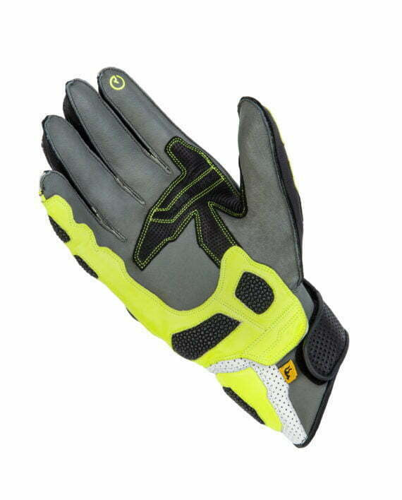 Thanks to the fact that these motorcycle gloves are made of goat leather and kangaroo leather, they are durable, comfortable, and provide a very good grip. With a hard wrist protector and details in durable Superfabric™ along with shock-absorbing SAS-TEC foam, your hands receive optimal protection. With parts made of perforated leather, these short motorcycle gloves are very comfortable even when riding on hot days.