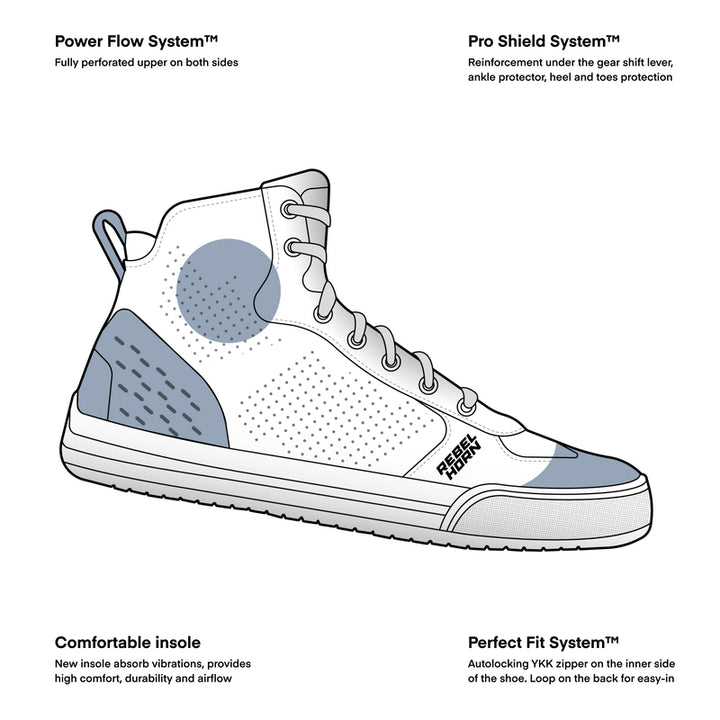 Rebelhorn Spike are stylish and functional motorcycle shoes, designed for city riding and everyday use. These shoes combine safety, comfort, and style and are perfect for riders who want a casual look without compromising on protection.