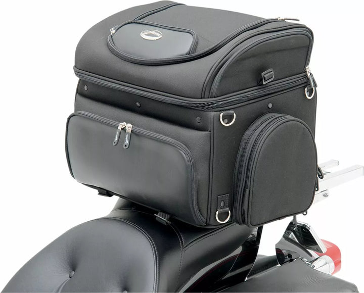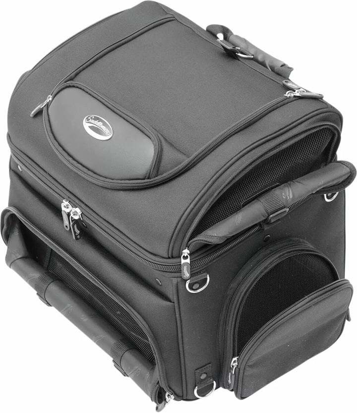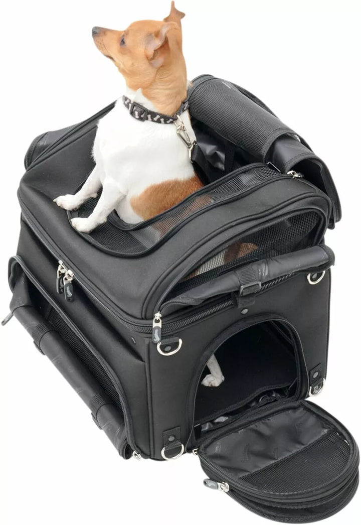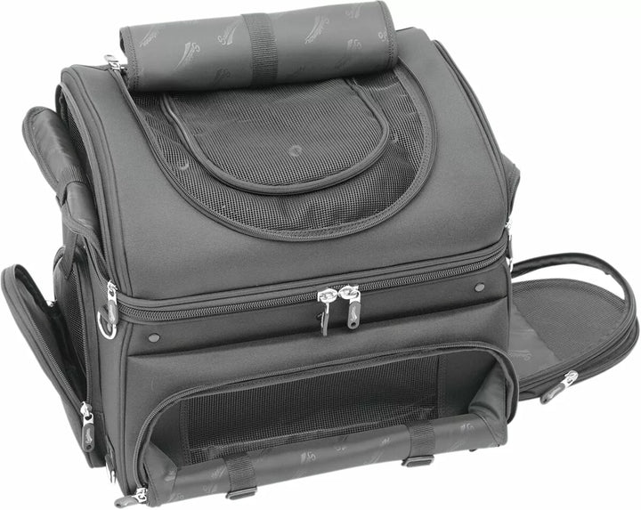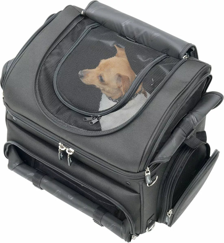 Best way to carry your small pet on your motorcycle in comfort, plus this carrier doubles as an effective cargo bag, multiple vents and access flaps let you vent frresh air to your pet while providing easy and spaw botom Pad for Your Pet's Comfort; Includes Food and Water Trays That Stow Neatly in their Own Compartment, Two Mounting Systems Included; A Saddlemen Versa-Mount Seat Harness or Adjustable Sissy Bar Strap System Easily Attaches The Bag To Your Motorcycle's Seat, Luggage Rack or Sissy Bar, Quick-Disconnect Mounting Straps and Sissy Bar Sleeve Allows The Bag To Be Removed FROM YOU MOTO You can position for your, or your passenger's, Riding Comfort, Convenient Liner Bag With Carry Handles Lets You Store Clothes Or Cargo Away From Your Pet Or Other Bag Contents, Sturdy Grip Handle For Convenient Carrying - Included Backpack Strap Pack Pack Pack Pack Freedom of Movement While Keeping Them Secured in the Bag; Comes with a short internal leash and a long walking leash for pet Pit stops, pet Compartment Measures 16 "W x 14" L x 14 "t (3,200 cu. In. Capacity), please note dimensions of this bag to even proper fit for your pet.