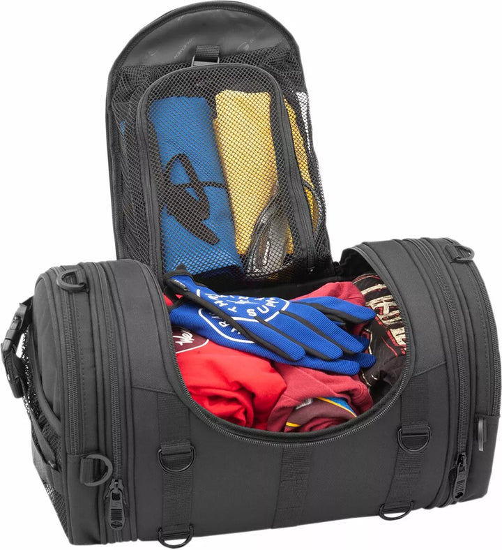 Dimensions: 16 "Wide X 10" Deep X 10 "Tall (With Additional 3" Expansion), Cubic inches: 1,300, UV-rated, Weather resistant 1200d chassis, Maintains Shape Even When Empty, Wide Zipper Dedd When Needed, Internal Zippered Mesh Pockets Keep Items Organized, Easy-Mounted to Sissy Bar Plus Full Mounting Strap Kit for a Variety of Mounting Options, All Strap End Include Our Unique Keepers System Which Heavy install Additional Mounting or Attaching Options, Integrated Molle Modular Attachment Points for Storage Customization, Includes Removable Shoulder Strap and Carrying Handle for Transportation Ease, EU Dimensions 40.64 cm Width x 25.4 cm Depth x 25.4 cm Height with an expans L