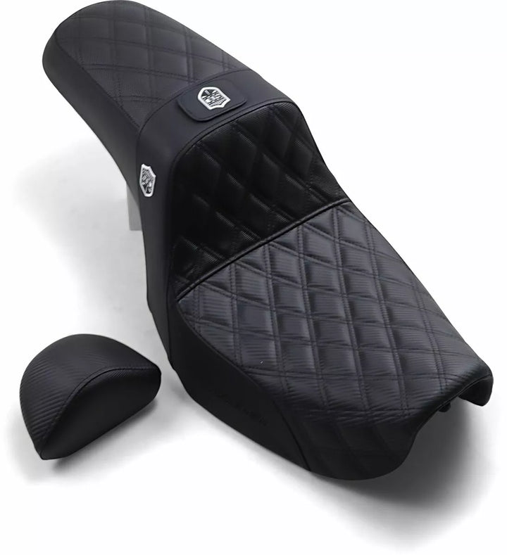 True Performance Oriented Comfort Seat, Best of Both Worlds with Contoured Lines and a Buckeded Driver メ S Seating Area and Substantial Lumbar, Saddlemen Seats With Gelcore ル Technology Are The Only Motorcycle Seats SCIENTIFTIVIE to 92% instantly providing the ride you deserve, crafted with saddlemen メ s carbon fiber front with black gripper lumbar in passenger area, sdc logo badge on eiter side, made in the USA