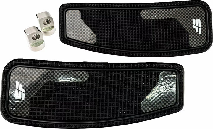 Mini Floorboards Sold in Pairs are Constructed of Billet Aluminum With Diamond Cut, Billet Aluminum With Stainless Steel Mounting Clevis, Carbon Fiber Insert Covered with TPU Film Protection for Durability and a Lasting Finish, Models with Passenger Footpatpe Floorboard Mounts.