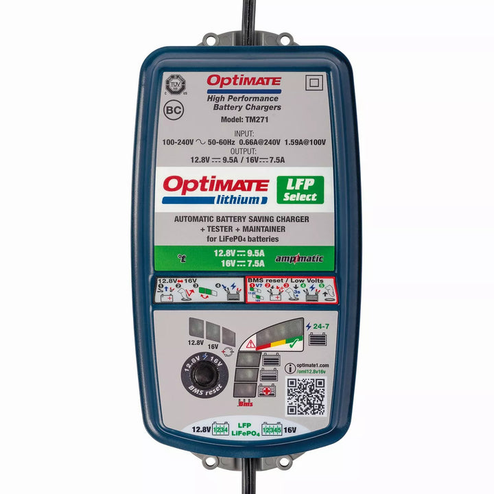 OPTICATE LITHIUM Series LFP 4S 9A / 5S 7A: 10-Step 12.8V 9.5A / 16V 7.5A Battery-Saving Charger and Maintainer., The Advanced 'Pro' Battery Charger for the 12.8V & 16V LifePo4 / Lfp Lithium Battery In In In In case The Ultimate Lithium Charger for the Track!, Ideal for 12.8V / 16V LIFEPO4 / LFP Batteries Found in the Vehicles / Craft Above., BMS: Power Reset Rapidly Re-Eergizes The Battery., Select Charger 16v for 4.8v For 4.8v For 4.8v For 4.8v For 4.8v For 4.8v For 4.8v For 4.8v For 4.8v For 4.8v For 4.8v For 4.8v For 4.8v For 4.8v For 4.8v For 4.8V Selection Remains in Memory Even IF AC Power is Lost., Fully Automatic Multi-Step Program Brings The Battery Safely to Full Charge. Connect to the Battery and Optime Lithium Select Does The Rest, No Supervision Required!, Ampmatic: Automatically Adjusts Current to match Battery Size and Condition., Safe to Leave Connected. Full Electronic Protection., 24/7: Maintains Battery at Full Charge and Good Health., Low Voltage Recovery from as Low as 0.5v., S.O.H.: Tests Battery State of Health., Test: Warns When Battery: Greage is Detected. Efficient 24-7 Battery Maintenance and Stand-by Power Less Than 0.5W., IP54: Weatherproof. Rated for use down to -40 ° C / -40 ° f.