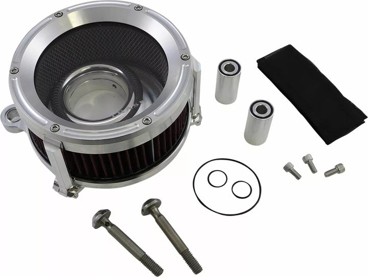 Features a Billet Aluminum Backing Plate With Hidden Integrated Breather System and a Plexiglass Outer Cover, Snap-in Velocity Stack for Improved Airflow, Dyno Developed and Tested, High-Flow Air Filter Is Reusable; Just Clean and Re-Oil, made in the USA