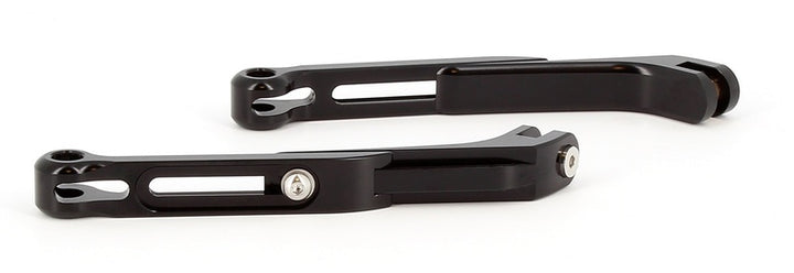 Adjustable length levers, for the V-PARTS Standard and Foldable/Adjustable Controls (LV-SL and LV-FL), in CNC machined Aluminum, black anodized Delivered by pair, including the brake and the clutch leverSliding End, allowing you to adjust the length of your levers Adapter to mount the levers on genuine holders and bolts are not included Color: Black