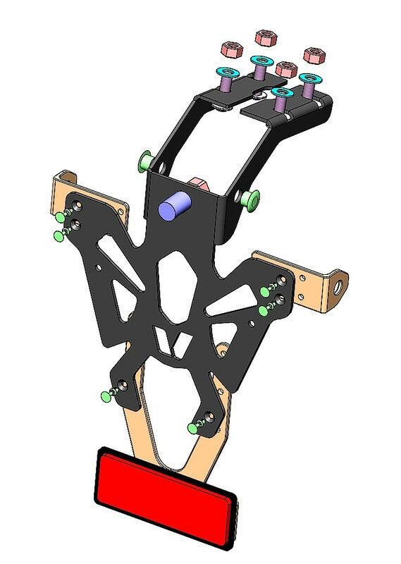 V PARTS license plate holder are manufactured in France. Inconspicuous and perfectly finished, they are specifically developed for the attached bike application list. 2mm thin but sturdy steel license plate holder Black epoxy painting CNC Manufactured – laser cut: precise finish Holes to fix license plate, indicators and license plate lighting Made in France Contents: Street legal license plate lighting, EU certified Adjustable reflector plate Reflector, EU certified More info: Optimized and discreet cable passageway Fast & easy mounting Adjustable indicators brackets Fits EU plates Indicator lights spacing: 170 to 220mm Color: Black Material: Steel