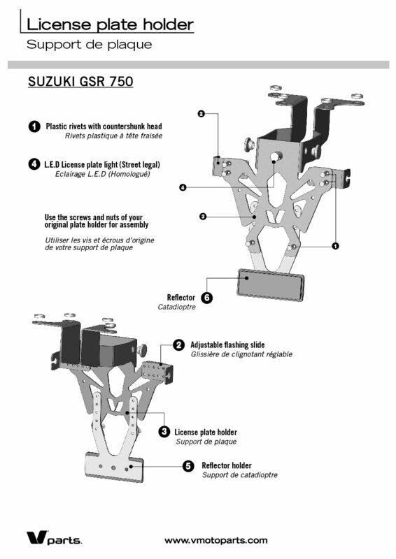 V PARTS License Plate Holder Black Suzuki GSR750 C8-SPS002