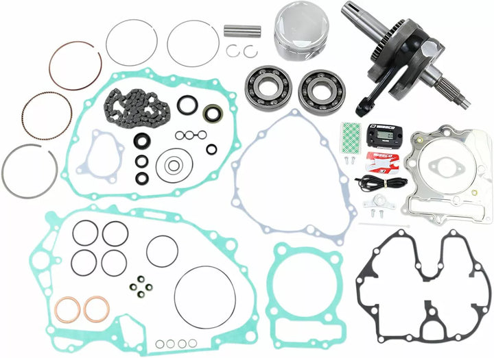 Kit includes a premium Forged piston kit with stock compression ratio and a high-quality cam chain, top and bottom end components are included for a complete engine rebuild, crankshaft and rod assembly designed and inspected to asset Bracket are Also Included in the Kit