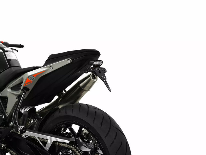 The License Plate Holder is Extremely Durable and Weather Proof., Black Powder Coated. , The License Plate Holder Can Be Used For Any Kind of License Plate (175mm Width)., No Modification of Fairing Required., Stepless Adjustment of Rake Angle., Indicator Support Adjustable in 3 Positions. Plate., Special Indicator Light Mounts (Sold Separately) Required for Stock Indicator Lights., Kit Includes: 1 License Plate Holder Incl. Mounting Kit., LED License Plate Light "e Approved" Incl. Support., Back Light With Support.