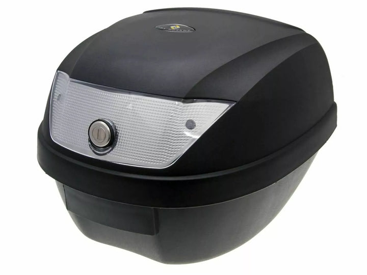Cutie superioară universală, plastic negru, cu blocare. Furnizat cu 2 chei și bază de montare, ușor de asigurat vehiculului și eliberare rapidă.