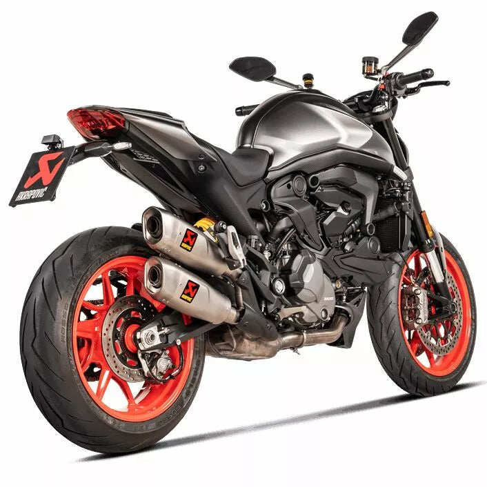 Acest produs oferă două mufler scurte, concepute pentru a sublinia configurația cu două motoare a bicicletei, mânecile exterioare și colectorul sunt construite din titan ușor, care a fost lansat pentru un finisaj optim și un apel vizual, această evacuare, această evacuare, implicată