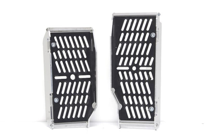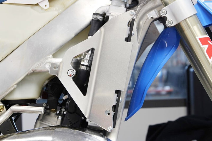 TM Racing EN250FI ES 2T - EN300FI ES 2T XTREM Radiator Guards - 1,3 kg. În special, a făcut enduro greu și s -a dezvoltat cu călăreții noștri în toate condițiile, acești radiatori gardieni victime un maxim de protecție prin înfășurarea radiatoarelor și fiind cadrul pentru a oferi un maxim de rigiditate și limitare a deformațiilor. Must este grila de protecție HDPE din plastic de 6 mm grosime și detașabilă! Acesta va ajuta la consolidarea din nou a rezistenței în caz de impact, nu limitează fluxul de aer și oferă o curățare perfectă a radiatoarelor prin eliminarea fetelor în mai puțin de 30 de ani (vezi video de mai jos). Baza produsului este încă aceeași, folosind aluminiu de 4 mm grosime, cu distanțiere care oferă o rigiditate puternică. Se potrivește pe TM Racing EN250FI ES 2T - EN300FI ES 2T.