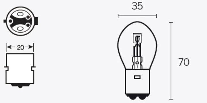 V Becurile de înlocuire a pieselor sunt esențiale pentru siguranța dvs., pentru a vedea și a fi vizionat; Fie pe motocicleta dvs., quad sau scuter.B35 Bulbs Tip12V - 35/35wfitmentba20d/732715,17 Baza becului: BA20D HOMOLOGIE: Omologat și omolog Forță: 35/35W Tensiune: 12V