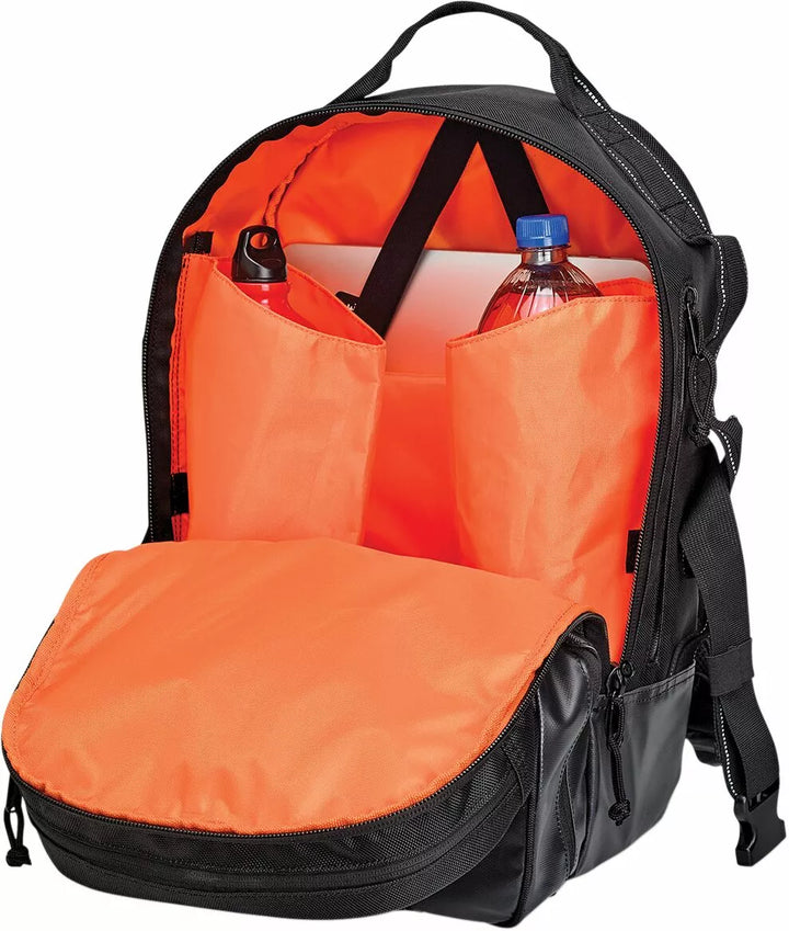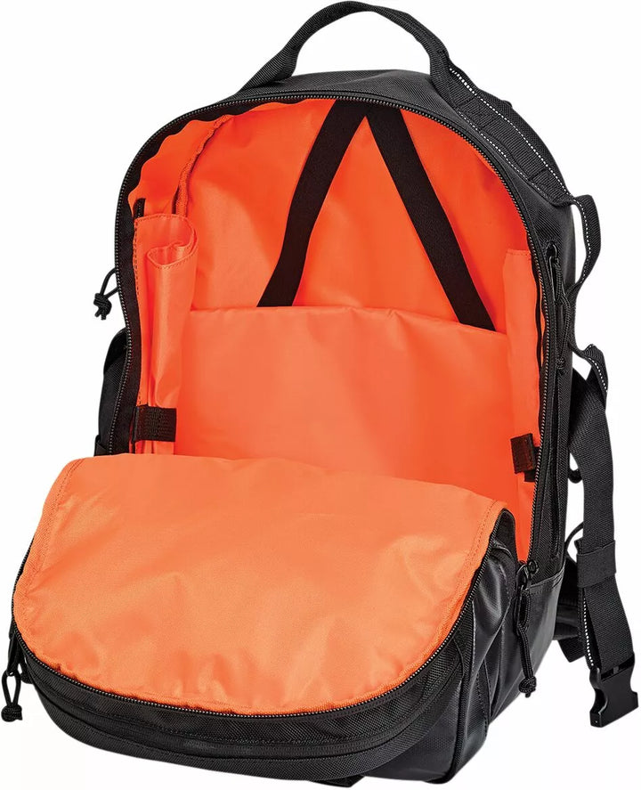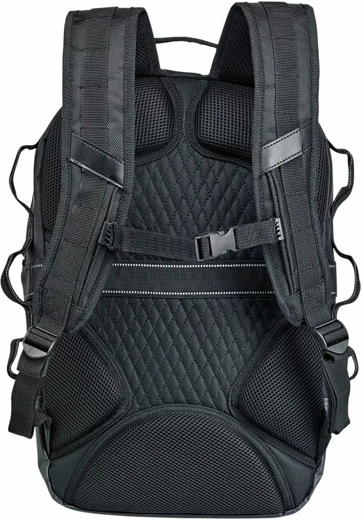 1680 Denier Ballistic Nylon Outer Chassis With PVC Coating Outer Shell, PVC-Treated Heavy-Duty Bottom and Lower Side Panel's Resist Water and Dirt, Padded Laptop Sleeve With Elastic Retainers in the main compartment, Upper exterior Compartment Molded Nylon Buckles on Cinch Straps For Speedy Mounting on Sissy Bars, External Straps Can Be Used to Add a Bedroll, Jacket or Skateboard până la geantă, 6 puncte grele, cu bare, cu bare, pentru încărcare și opțiuni de bioming, căptușită ar trebui și confort, ține 48-12oz cutii