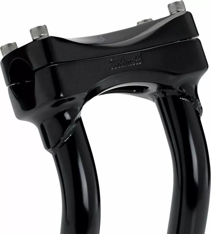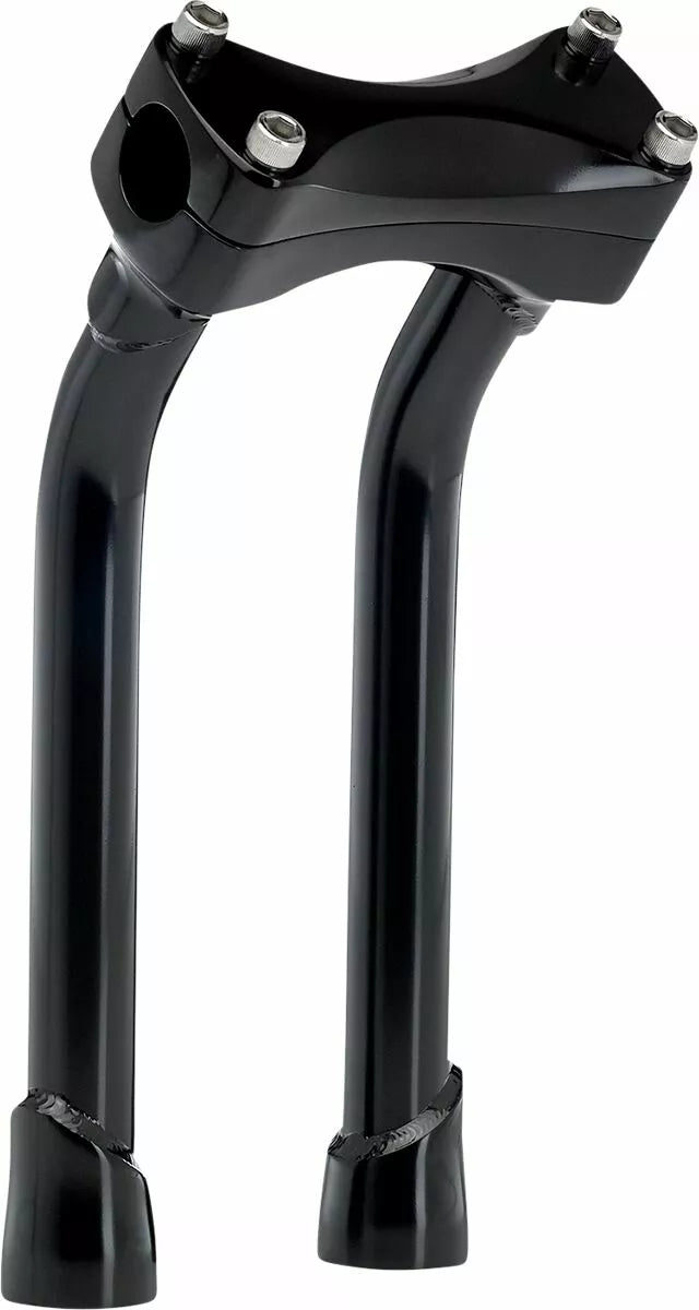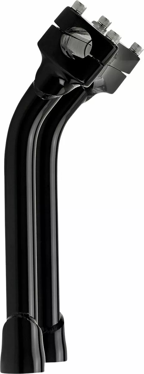 Investment-Cast One-Piece Steel Bar Clamp Accepts 1-1/8 "O.D. Handlebars, 0.120" (3 mm) Wall x 1 "o.d. 4130 Chromoly Uprights, CNC Lathe-Turned Mounting Base Accept 1/2-13 T.P.I. Stock Fit Most Stock and Select Aftermarket H-D Fork Trees, Pullback Murdock Risers Feature Mandrel-Bent Uprights for Two Inches of Rearward Bar Offset-perfect pentru reducerea atingerii pentru călăreți mai scurti, sudat TIG și lustruit manual înainte, hardware cu clemă de bare