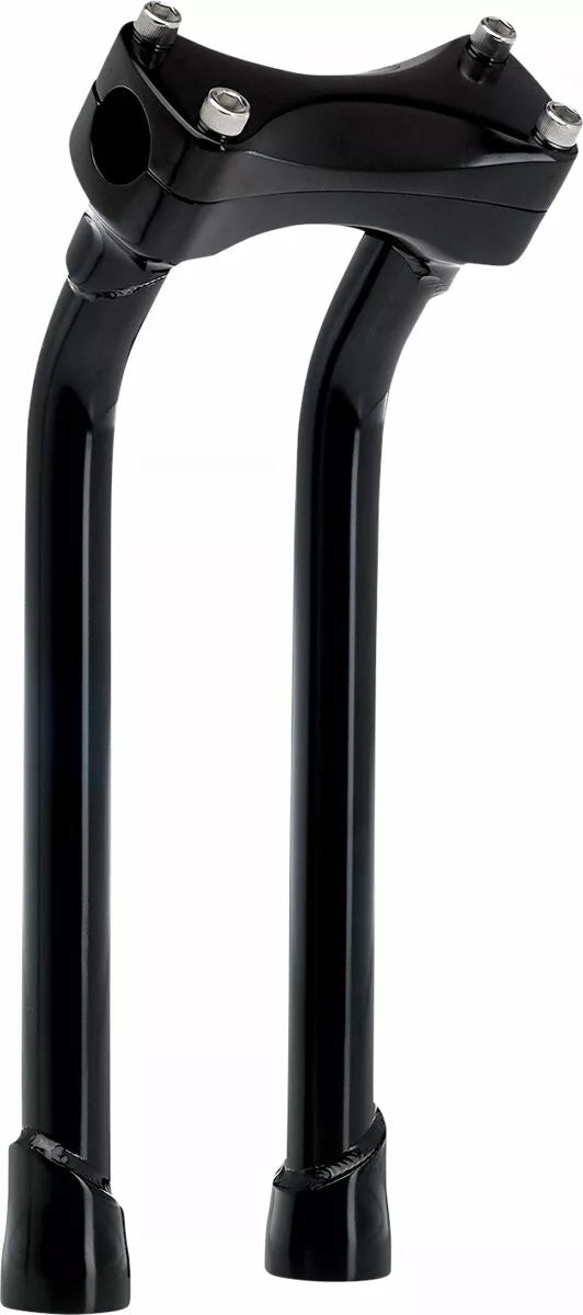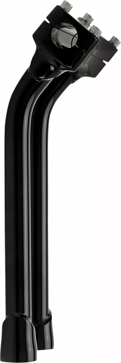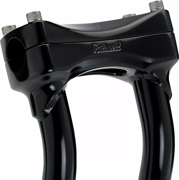 Investment-Cast One-Piece Steel Bar Clamp Accepts 1-1/8 "O.D. Handlebars, 0.120" (3 mm) Wall x 1 "o.d. 4130 Chromoly Uprights, CNC Lathe-Turned Mounting Base Accept 1/2-13 T.P.I. Stock Fit Most Stock and Select Aftermarket H-D Fork Trees, Pullback Murdock Risers Feature Mandrel-Bent Uprights for Two Inches of Rearward Bar Offset-perfect pentru reducerea atingerii pentru călăreți mai scurti, sudat TIG și lustruit manual înainte, hardware cu clemă de bare